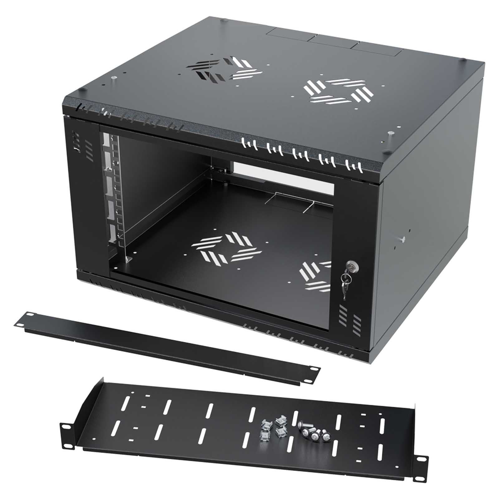 Szafa wisząca 19" 6U, 350mm, drzwi szklane, szara (zestaw)