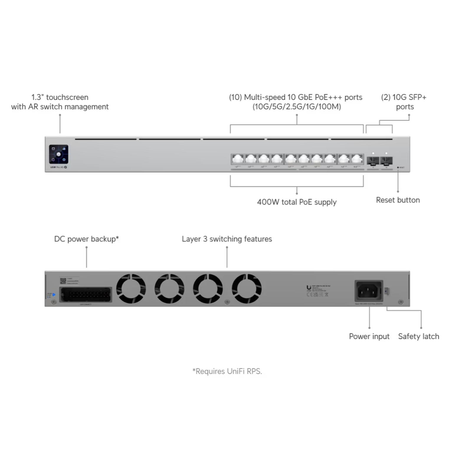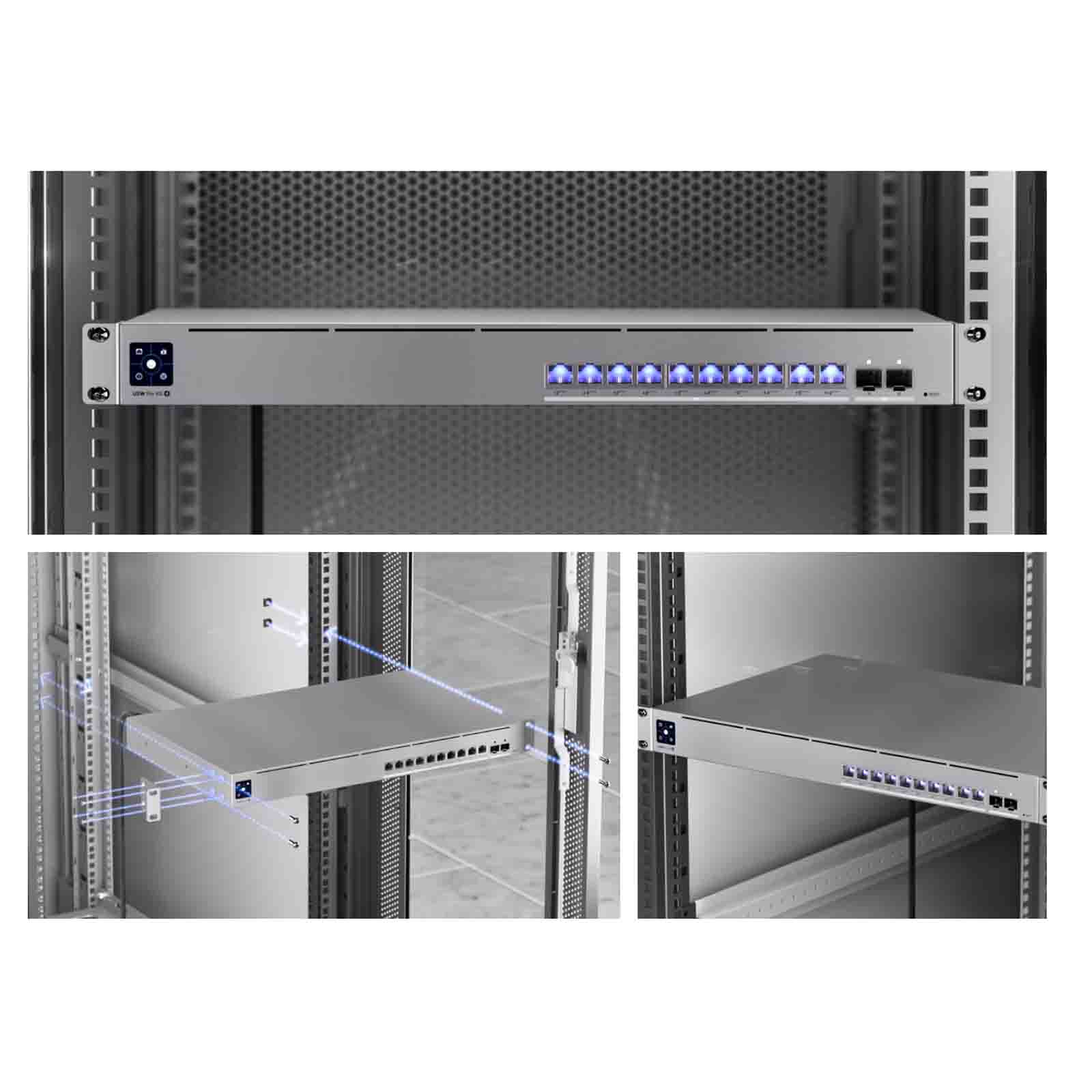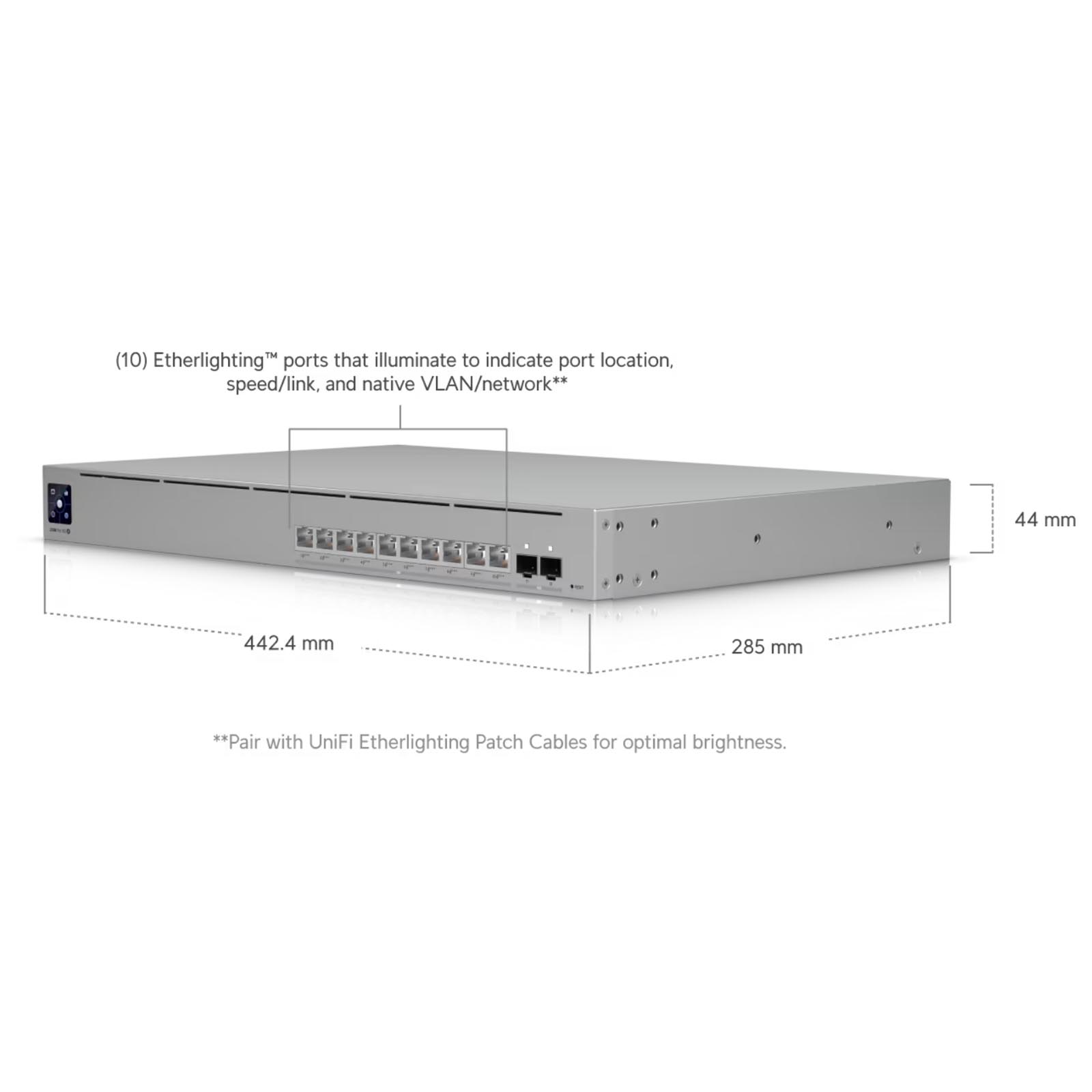 Ubiquiti USW-Pro-XG-10-PoE to zarządzalny switch przeznaczony do pracy pod kontrolą systemu UniFi. Wspiera część funkcji Layer 3 - serwer DHCP, DHCP Relay, routing Inter-VLAN oraz statyczny routing. Oprócz tego switch obsługuje większość standardowych funkcji Layer 2, ich pełną listę znajdziesz w specyfikacji poniżej. Z uwagi na brak możliwości pracy w trybie standalone urządzenie najlepiej sprawdzi się w sieciach opartych o rozwiązania UniFi.