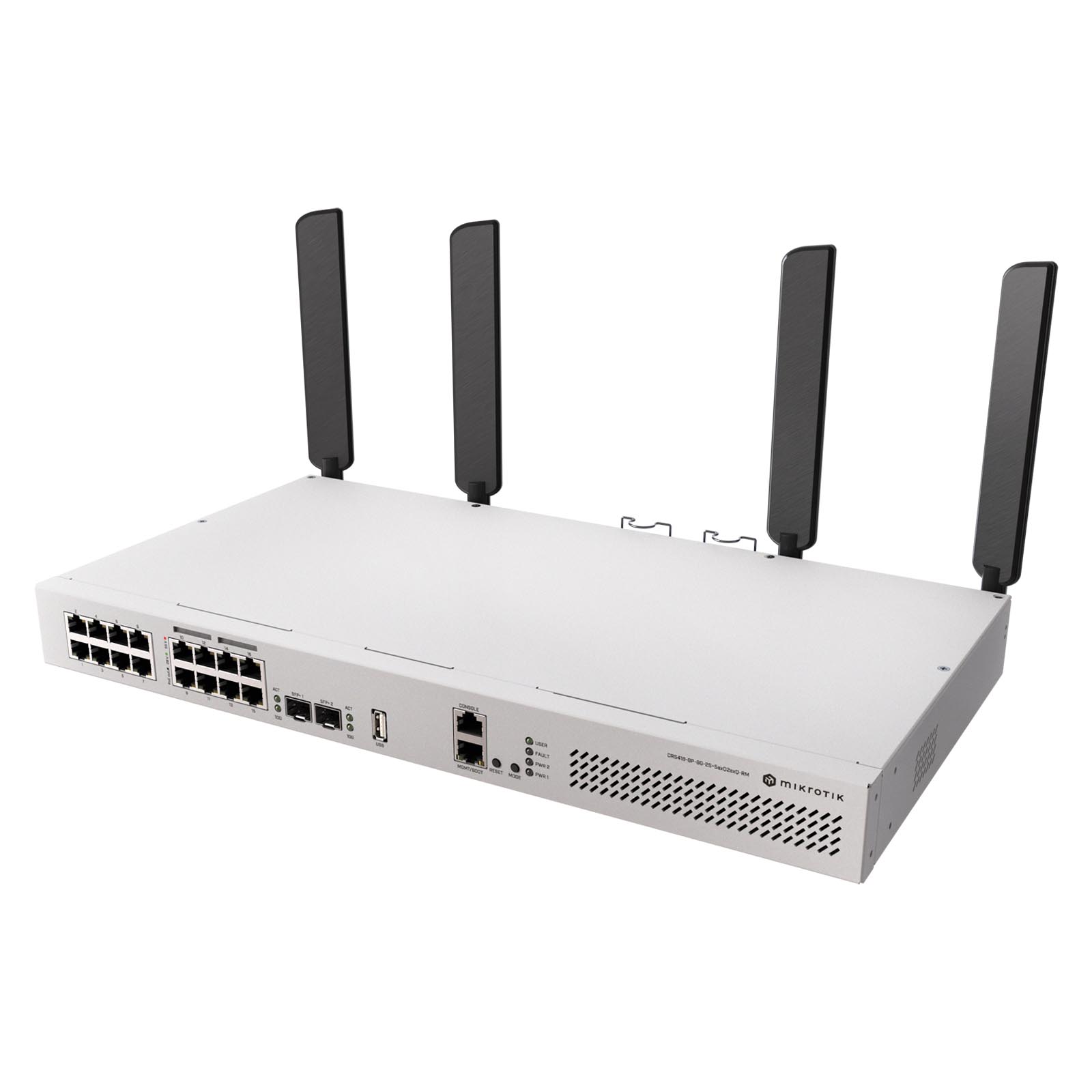Ten wszechstronny przełącznik oraz router, oferuje również dwuzakresowe Wi-Fi 6 4x4 MIMO – zapewniające szybką i niezawodną łączność wszędzie tam, gdzie jest to potrzebne. Idealne rozwiązanie do uproszczenia konfiguracji serwerowni w piwnicy lub średniej wielkości biur o ograniczonym budżecie – teraz nie musisz już nosić ze sobą oddzielnego punktu dostępowego. Wiemy, że urządzenia montowane w szafach rackowych nie słyną z doskonałego zasięgu sieci bezprzewodowej. Dlatego model CRS418-8P-8G-2S+5axQ2axQ-RM z Wi-Fi ma z tyłu specjalne otwory na pigtaile, dzięki czemu w razie potrzeby można umieścić anteny na zewnątrz obudowy.