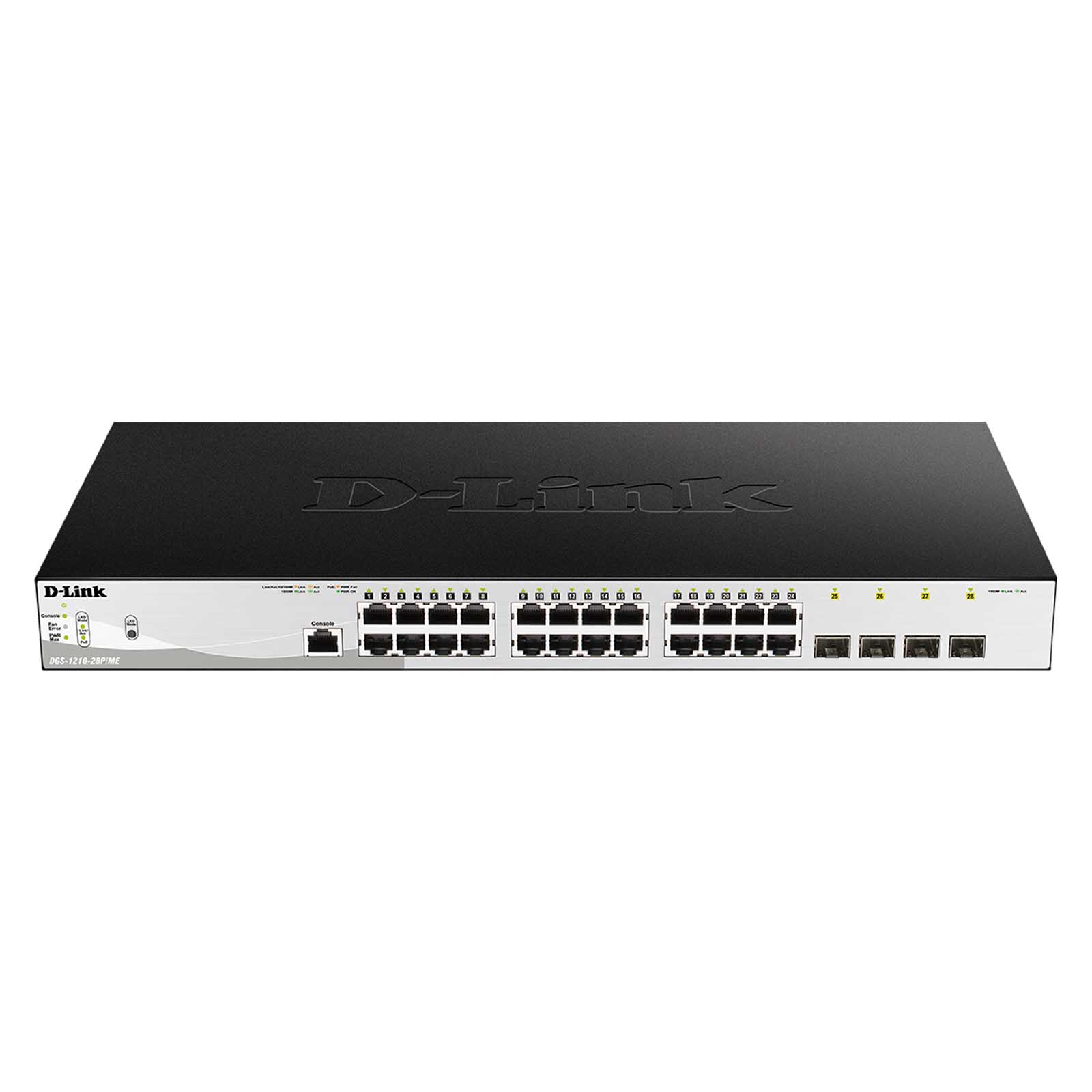 D-Link DGS-1210-28P/ME to zarządzalny 28-portowy gigabitowy przełącznik zarządzalny, wyposażony w 24x porty Gigabit Ethernet PoE i 4x sloty SFP, interfejsy zarządzania oraz rozbudowane funkcje warstwy drugiej. Przełączniki zarządzalne Gigabit serii DGS-1210/ME oferują szeroki wybór gęstości portów Gigabit, aby sprostać różnorodnym wymaganiom przedsiębiorstw i sektora publicznego w zakresie łączności. Dzięki opcjonalnej funkcji PoE do wygodnego zasilania urządzeń brzegowych, portom SFP do rozszerzenia łączności sieciowej oraz zaawansowanym funkcjom warstwy 2, seria DGS-1210/ME idealnie nadaje się do każdej warstwy dostępowej przedsiębiorstwa lub dużych wdrożeń w wielu lokalizacjach i pozwala firmom budować bezpieczniejsze i wydajniejsze sieci dzięki zaawansowanym funkcjom bezpieczeństwa sieciowego i QoS.