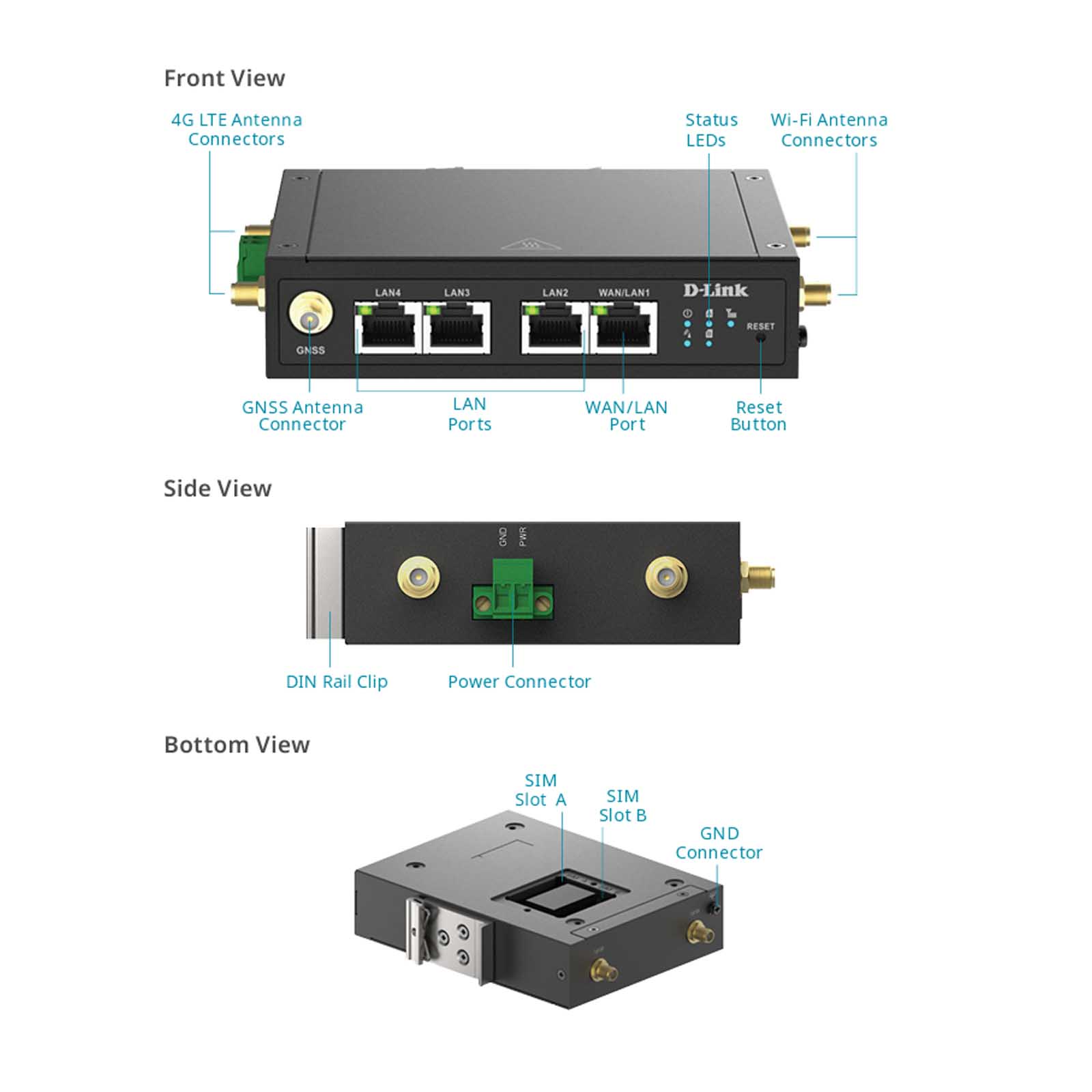 Router DWM-530-T zapewnia ciągłość działania dzięki obsłudze dwóch kart SIM (Micro-SIM 3FF), co zwiększa niezawodność i elastyczność w wyborze operatora. Dzięki temu nawet w lokalizacjach o słabym zasięgu możliwe jest utrzymanie stałej łączności. Cztery porty LAN, z których jeden można skonfigurować jako WAN, pozwalają na płynne przełączanie między połączeniami Ethernet i LTE, aby zawsze korzystać z najlepszego dostępnego sygnału.