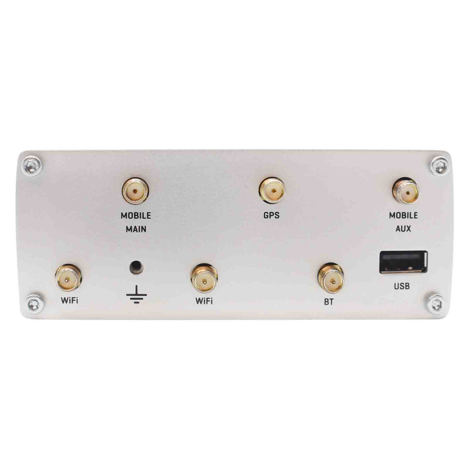 2 x SMA for LTE, 2 x RP-SMA for WiFi, 1 x RP-SMA for Bluetooth, 1 x SMA for GNSS |