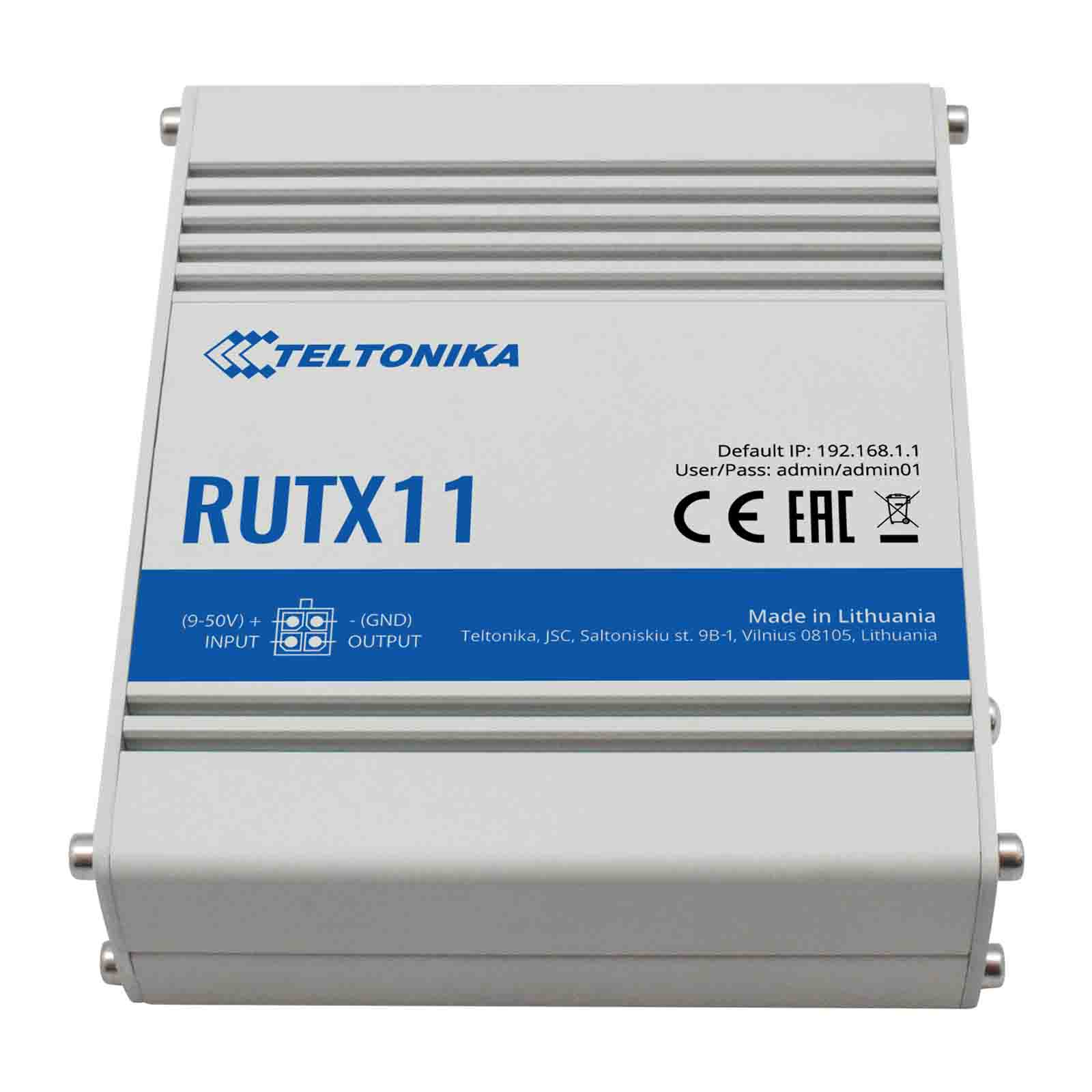 RUTX11 posiada czterordzeniowy procesor ARM Cortex A7 o taktowaniu 717MHz i 256 MB pamięci RAM DDR3. Router zawiera oprogramowanie RutOS i funkcje bezpieczeństwa, OpenVPN, IPsec, Firewall, Auto Failover, kontrola SMS oraz wsparcie RMS. To urządzenie jest idealne do zaawansowanych aplikacji przemysłowych i korporacyjnych. Urządzenie zamknięte jest w aluminiowej obudowie.