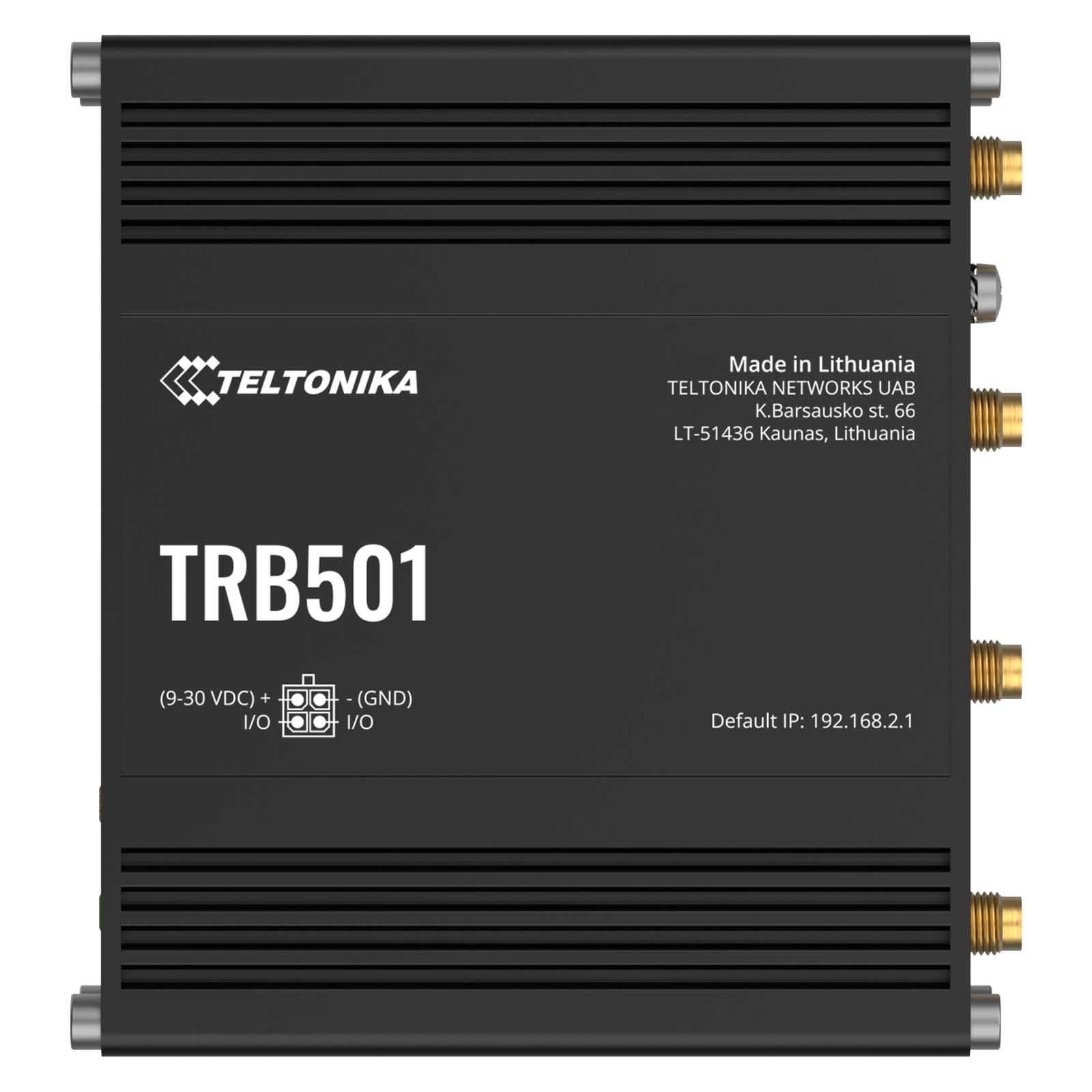 Teltonika TRB501 (TRB5011A0000) to kompaktowa przemysłowa brama sieciowa 5G wyposażona w port 2,5G Gigabit Ethernet, eSIM, Micro-USB, wydajny procesor i oprogramowanie RutOS do zaawansowanych rozwiązań sieciowych.