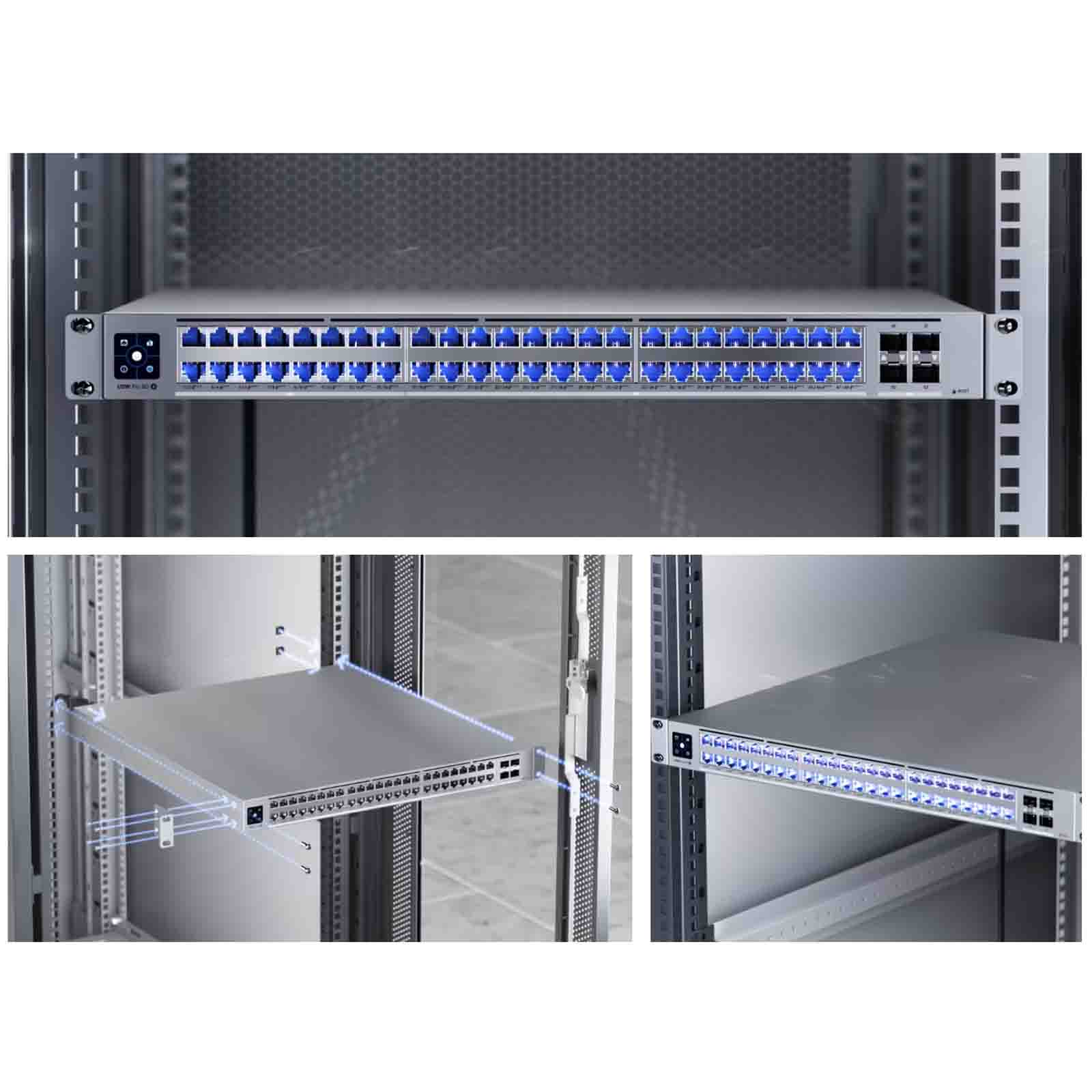 UniFi Switch Pro XG 48 PoE wprowadza technologię Etherlighting™, przełomową funkcję, która wizualnie wskazuje lokalizację portu, prędkość łącza oraz przypisanie VLAN lub sieci poprzez dynamiczne podświetlenie. Funkcja ta ułatwia rozwiązywanie problemów i zarządzanie okablowaniem, zwłaszcza w ciemnych lub gęsto upakowanych środowiskach rackowych. W połączeniu z kablami krosowymi UniFi Etherlighting porty osiągają optymalną jasność i widoczność, zapewniając schludny, profesjonalny wygląd. Przełącznik jest również wyposażony w kolorowy ekran dotykowy LCM o przekątnej 1,3 cala, który umożliwia szybkie sprawdzanie stanu, konfigurację urządzeń i monitorowanie na żywo bez konieczności stosowania zewnętrznego oprogramowania. Ten przełącznik 1U do montażu w szafie rackowej, wykonany z wysokiej jakości stali SGCC, zapewnia integralność strukturalną i trwałość, bezpiecznie pasując do szaf rackowych z czterema słupkami o regulowanej głębokości od 600 do 1066 mm. Dzięki solidnej ochronie przed wyładowaniami elektrostatycznymi do ±30 kV (powietrze) i ±20 kV (kontakt), przełącznik UniFi Switch Pro XG 48 PoE został zaprojektowany tak, aby niezawodnie działać w każdym profesjonalnym środowisku IT.