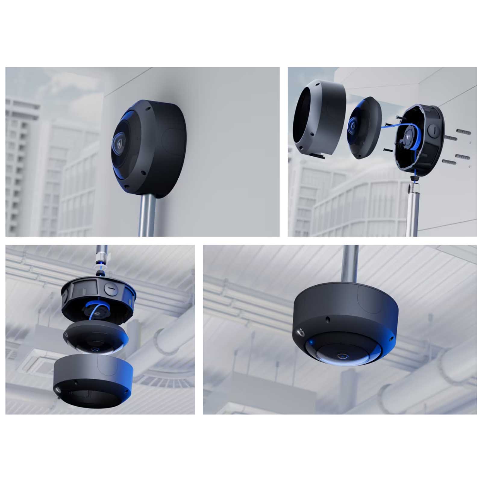 Ubiquiti Camera AI 360 Junction Box oferuje wszechstronność w różnych konfiguracjach montażowych. Ta skrzynka przyłączeniowa zapewnia elastyczność montażu kamery na różnych powierzchniach, w tym na płaskich ścianach, słupach lub przy użyciu uchwytu wiszącego (sprzedawanego oddzielnie). Wygodne prowadzenie kabli przez boczne i tylne wejścia 3/4” zapewnia czystą i uporządkowaną instalację. W razie potrzeby można łatwo uzyskać dostęp do połączeń kablowych, zapewniając funkcjonalność systemu bezpieczeństwa.Ubiquiti AI 360 Junction Box jest kompatybilne z kamerami UniFi Protect AI 360 oraz UniFi Protect G6 Pro 360: