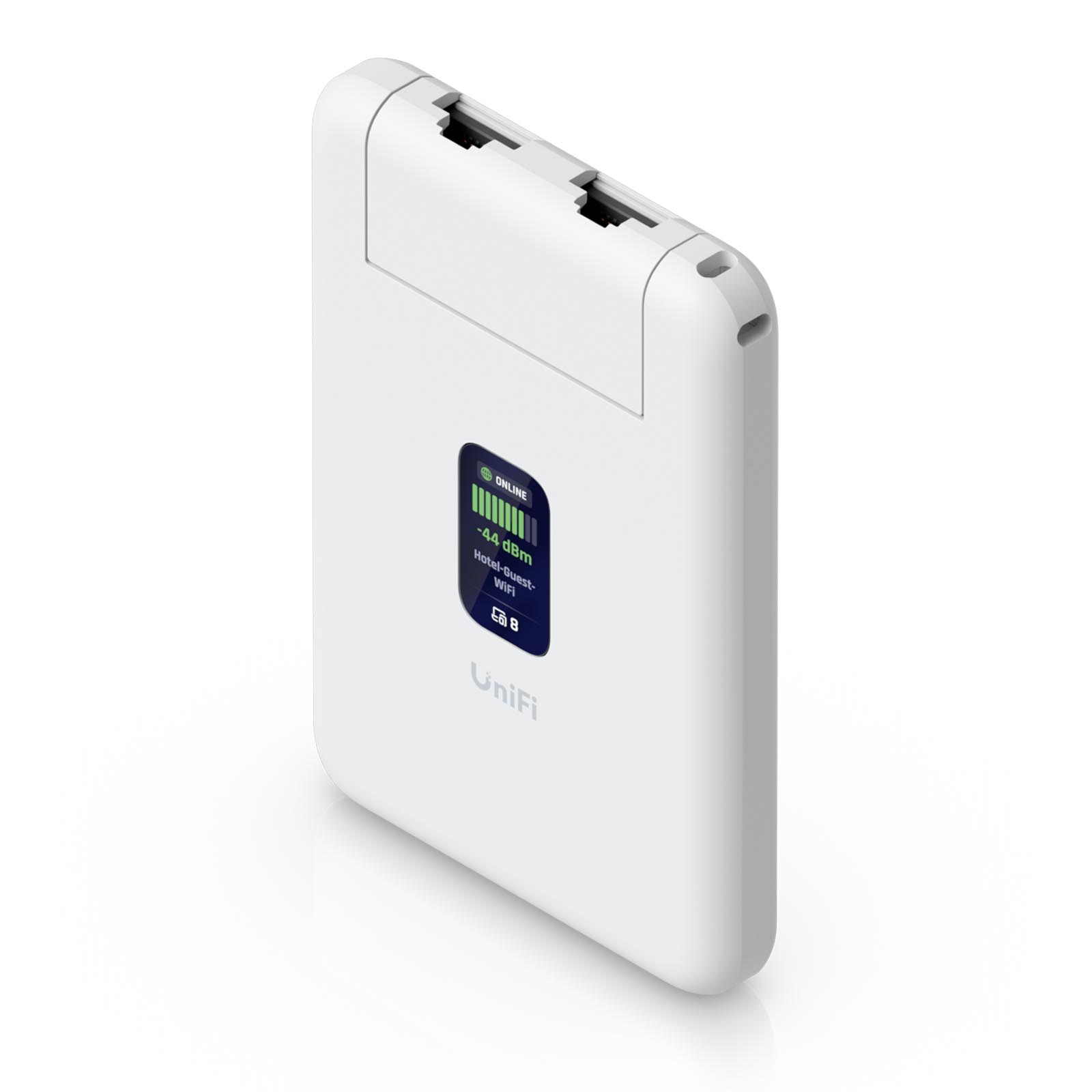 Zaprojektowany z myślą o mobilności, router podróżny UniFi łączy w sobie elegancki, minimalistyczny design z profesjonalnymi funkcjami. Obudowa z poliwęglanu jest trwała, a jednocześnie lekka, dzięki czemu nadaje się do częstego podróżowania. Dwa porty Gigabit Ethernet umożliwiają przewodowe połączenia z laptopami, komputerami stacjonarnymi i innymi urządzeniami sieciowymi, a obsługa WiFi WAN umożliwia szybkie połączenie z sieciami hotelowymi lub dla gości. Router obsługuje szeroki zakres starszych i nowszych standardów WiFi, zapewniając kompatybilność z istniejącą infrastrukturą. Zasilanie odbywa się przez USB-C, ze standardowego źródła 5 V 2 A, dzięki czemu może być zasilany z popularnych adapterów, powerbanków lub laptopów. Działając niezawodnie w temperaturach od -10 do 40 stopni Celsjusza, UTR nadaje się do różnych warunków wewnętrznych. Zgodność z NDAA oraz certyfikaty CE, FCC i IC dodatkowo potwierdzają jego gotowość do użytku profesjonalnego i regulowanego.