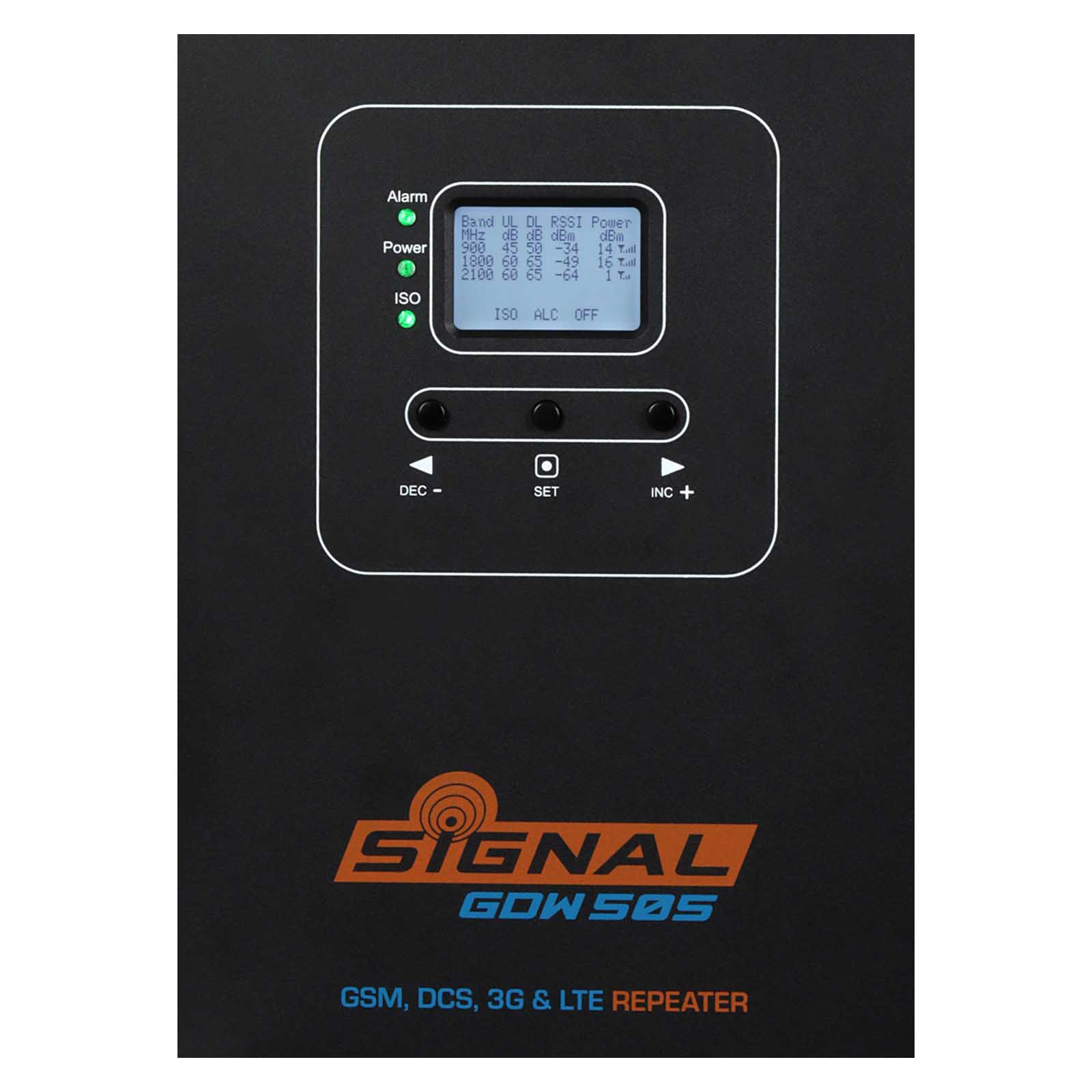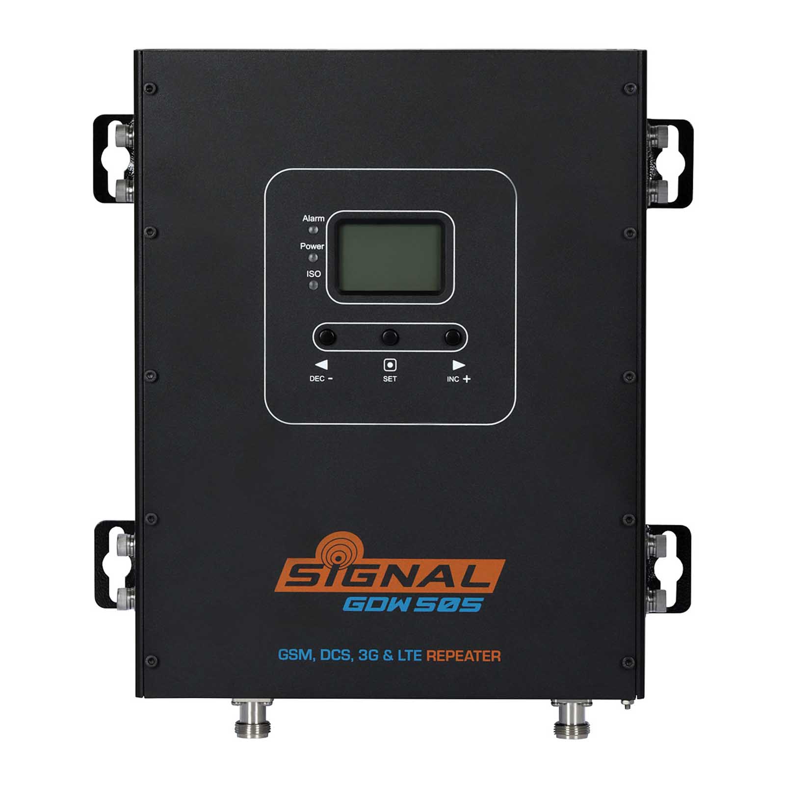 Signal GDW-505 wzmacniacz (EGSM, GSM, DCS, WCDMA, LTE) służy do wzmocnienia sygnału GSM/3G/LTE i wprowadzeniu go do wewnątrz pomieszczeń. Powierzchnia wzmacniania około 500 m². Repeater Signal GDW-505 doskonale nadaje się do miejsc, gdzie sygnał jest na tyle słaby, że prowadzenie rozmów przez telefon komórkowy lub transmisja danych są niemożliwe. Przykładem może być miejsce położone daleko od nadajnika lub budynek z grubymi murami, piwnicami użytkowymi (kawiarnie) lub nowoczesnymi oknami, których szyby kryte są związkami metalicznymi. Wzmacniacz sygnału Signal GDW-505 rozwiązuje problem w hotelach, pensjonatach, domach i w wielu innych miejscach, gdzie sygnał sieci GSM/3G/LTE jest słaby, przez co rozmowa lub połączenie z Internetem jest niemożliwe. Wzmacniacz (repeater) Signal GDW-505 jest urządzeniem konsumenckim wzmacniającym pełny zakres GSM/EGSM/DCS/WCDMA (LTE w paśmie 900, 1800, 2100 MHz), spełniającym wymogi dyrektywy RED 2014/53/EU oraz normy ETSI 303 609. Urządzenie posiada deklarację CE. UWAGA: Brak zasilacza w zestawie. Do urządzenia należy dokupić zasilacz 12V, 3A. Cechy wyróżniające: