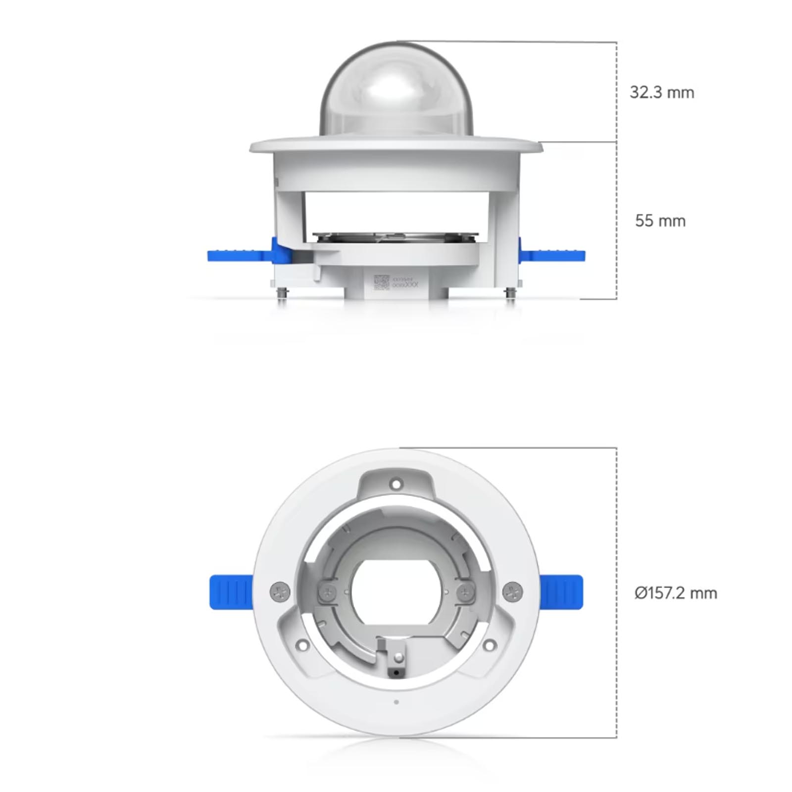 Ubiquiti G5 Dome Ultra Flush Mount (UACC-G5-Dome-Ultra-FM-W) to uchwyt montażowy do kamery kopułkowej typu dome, przeznaczone do montażu podtynkowego, wpuszczanego w ścianę lub sufit. Przeznaczony do kamer UniFi Protect G5 Dome Ultra (UVC-G5-Dome-Ultra-W). Uchwyt Ubiquiti UACC-G5-Dome-Ultra-FM-W służy do montażu kamer UniFi Protect G5 Dome Ultra (UVC-G5-Dome-Ultra-W) w suficie lub ścianie. Dzięki uchwytowi o głębokości 88 mm możesz zamontować kamerę w taki sposób, aby jak najmniej zaburzała estetykę wnętrza.
