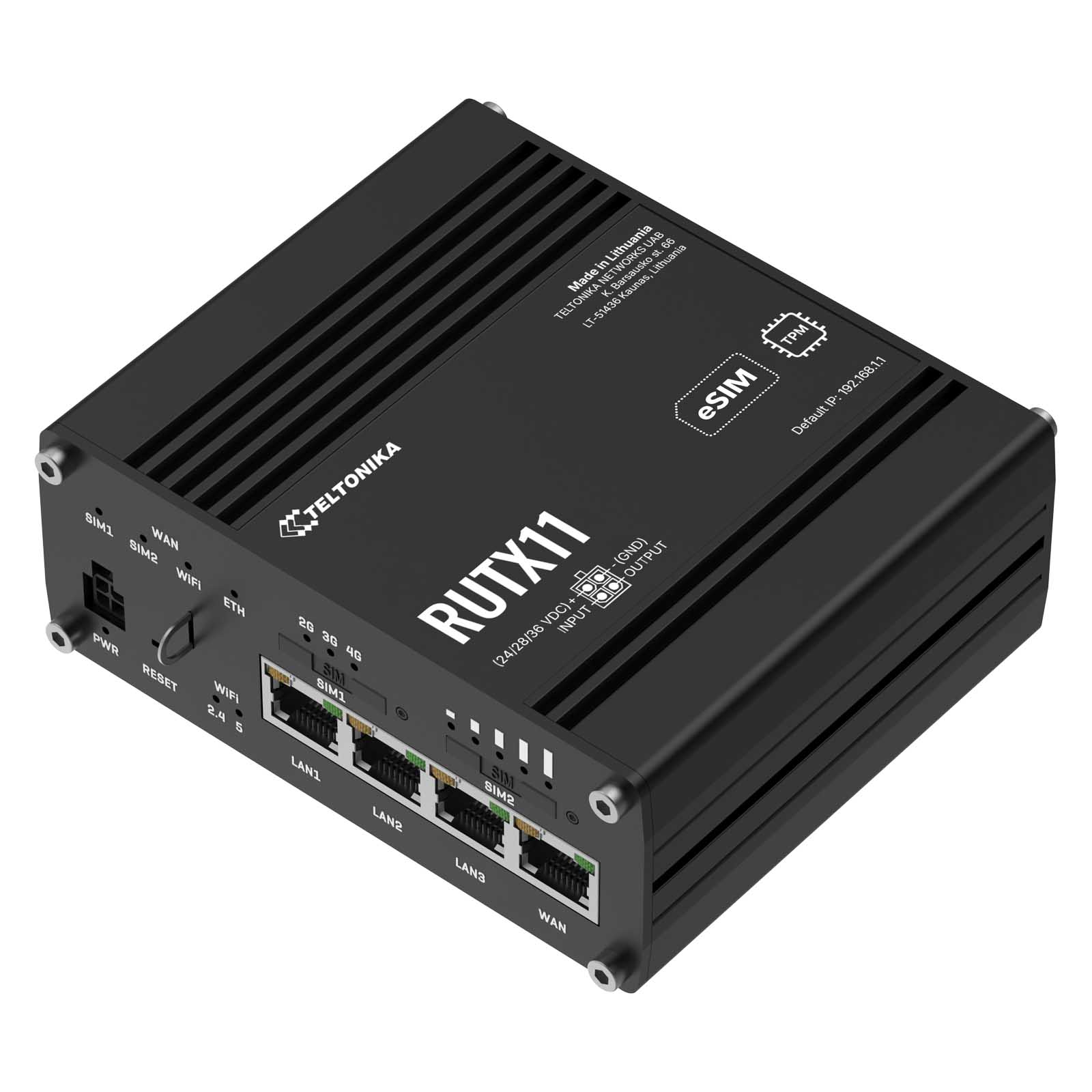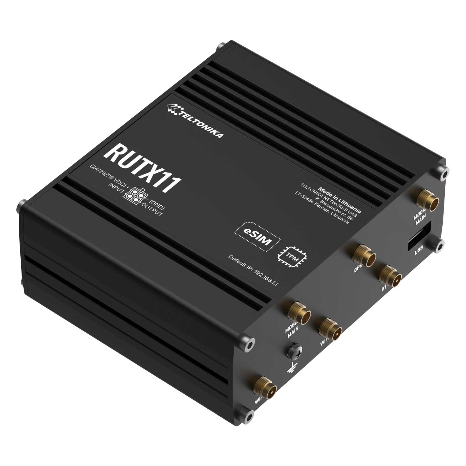 RUTX11 posiada czterordzeniowy procesor ARM Cortex A7 o taktowaniu 717MHz i 256 MB pamięci RAM DDR3. Router zawiera oprogramowanie RutOS i funkcje bezpieczeństwa, OpenVPN, IPsec, Firewall, Auto Failover, kontrola SMS oraz wsparcie RMS. To urządzenie jest idealne do zaawansowanych aplikacji przemysłowych i korporacyjnych. Urządzenie zamknięte jest w aluminiowej obudowie.