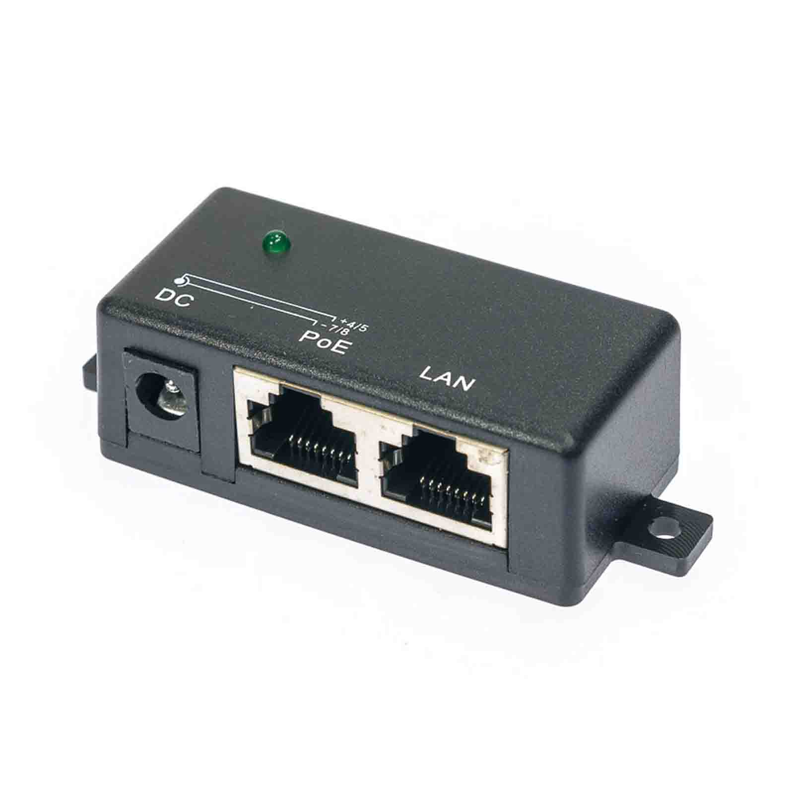Injector PoE (Power over Ethernet) Gigabit służy do przesyłu zasilania urządzeń aktywnych, wyposażonych w gigabitowy port Ethernet, poprzez wykorzystanie typowego kabla UTP/FTP. Wykorzystuje się go do urządzeń montowanych w miejscach, gdzie doprowadzenie zasilania 230V jest bardzo utrudnione lub niebezpieczne. Adapter można zamontować do podłoża, obudowy, ściany, deski itp. Injector posiada diodę LED. Napięcie dodawane jest na linie 4/5 (+) i 7/8 (-) bez zaburzania transmisji danych prowadzonej na tych liniach.